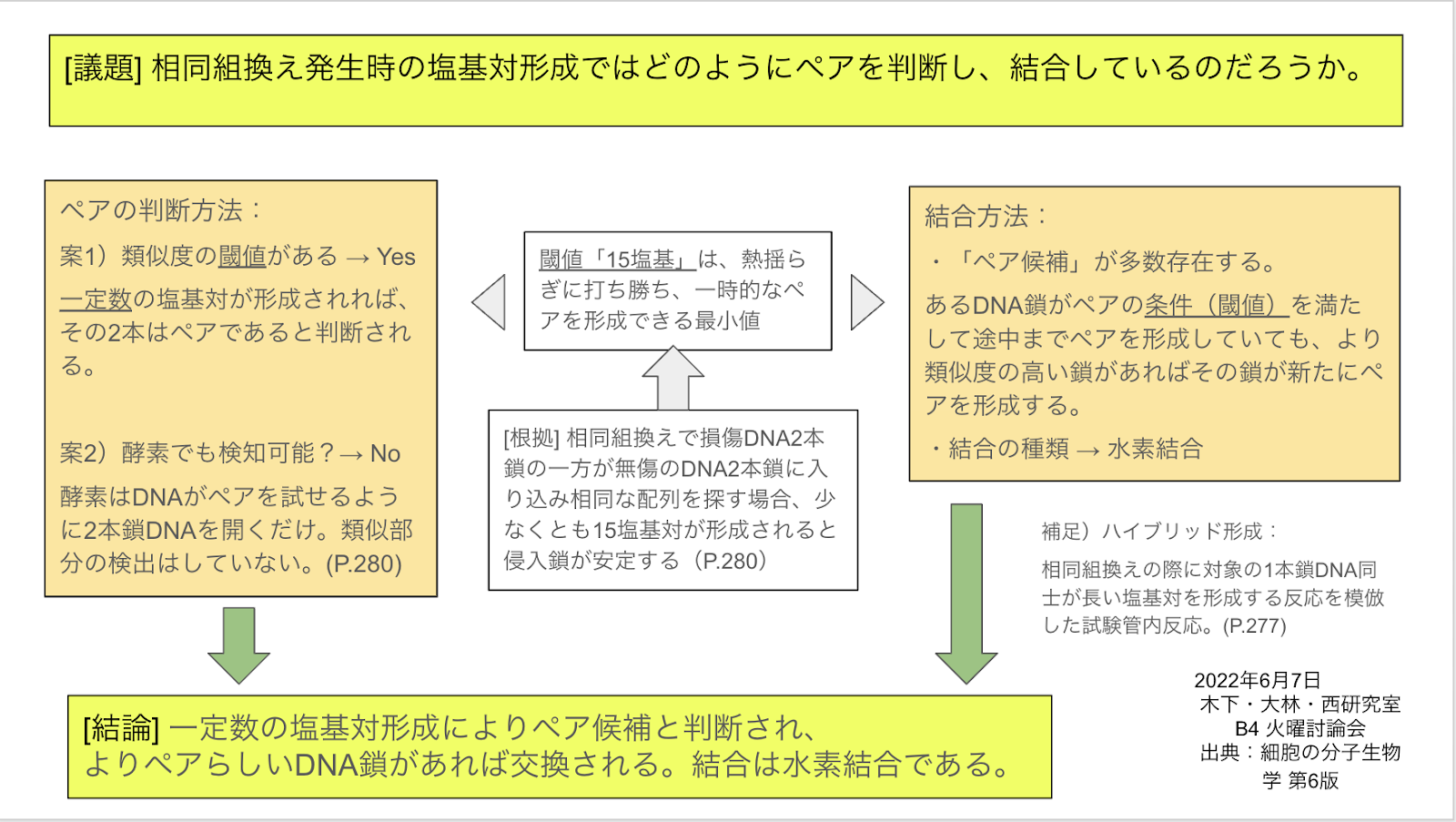 議論点:相同組換え発生時の塩基対形成ではどのようにペアを判断し、結合しているのだろうか。